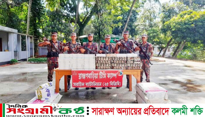 ব্রাহ্মণবাড়িয়ায় ৪৫ লাখ টাকার ভারতীয় চোরাচালানী পণ্য জব্দ, বিজিবির অভিযান অব্যাহত।